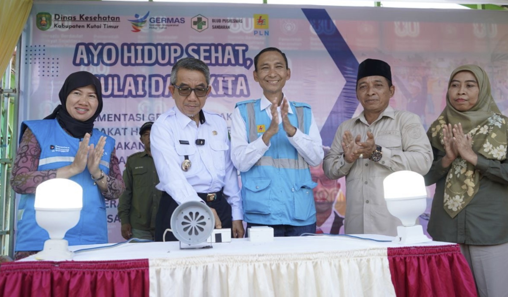Turut hadir dalam kegiatan ini perwakilan Dinas Kesehatan Kutim, pihak PLN UP3 Bontang, dan unsur Forkopimcam Kecamatan Sandaran.